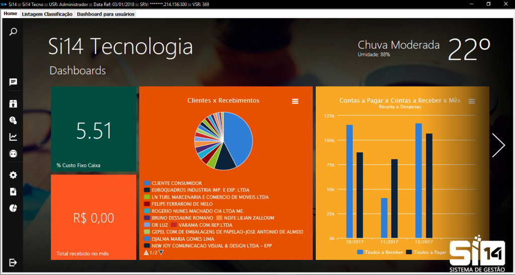 Veja abaixo que no Dashboard do Sistema de Gestão da Si14 é possível acompanhar este número facilmente o exemplo de 5.51%: